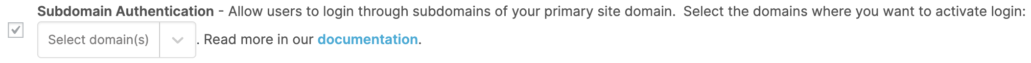 The dropdown checkbox allows you to selectively activate Subdomain Authentication only on specific subdomains: